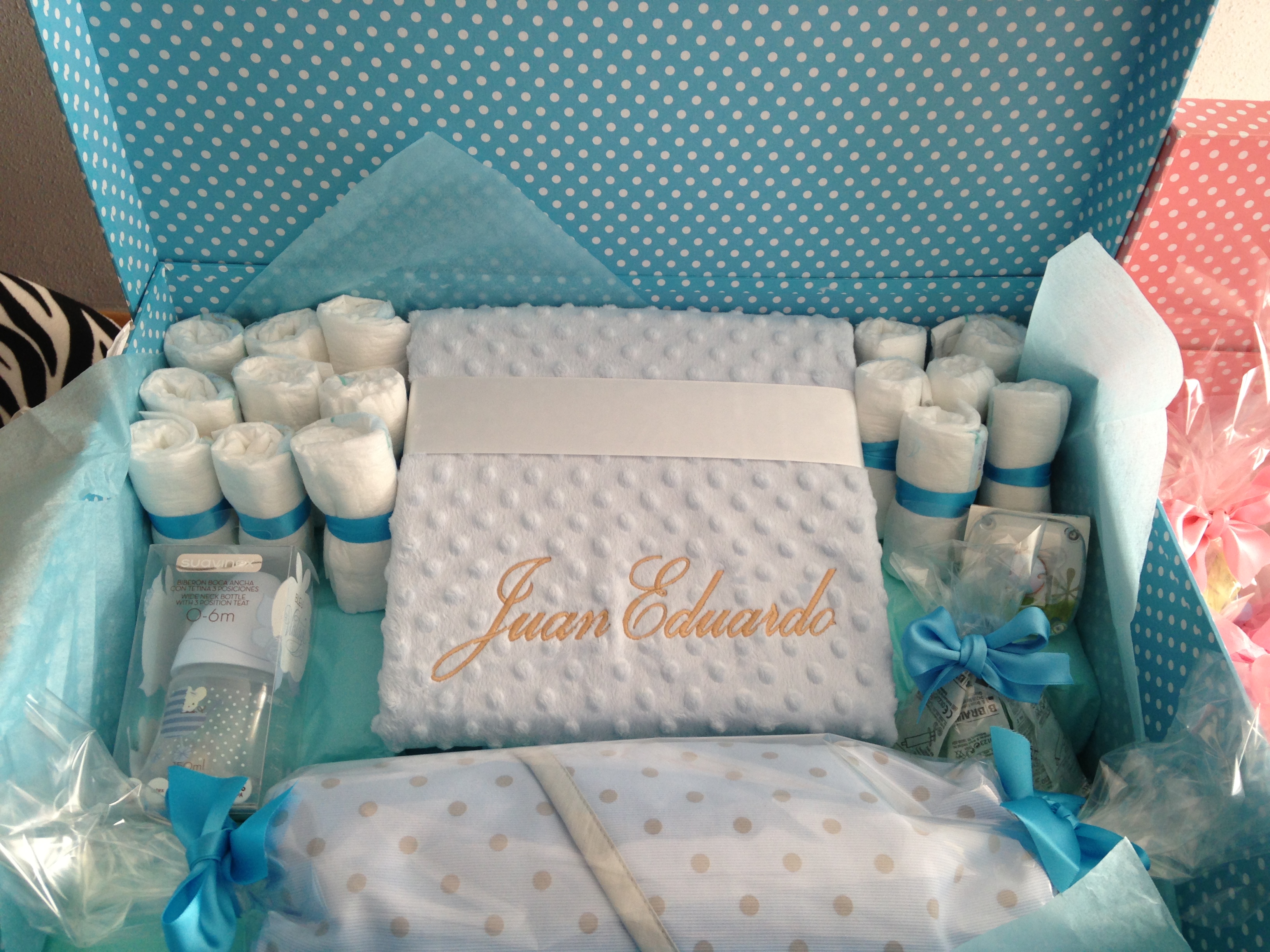 - y el regalo estrella la mantita mas suave con su nombre para poder guardarla.