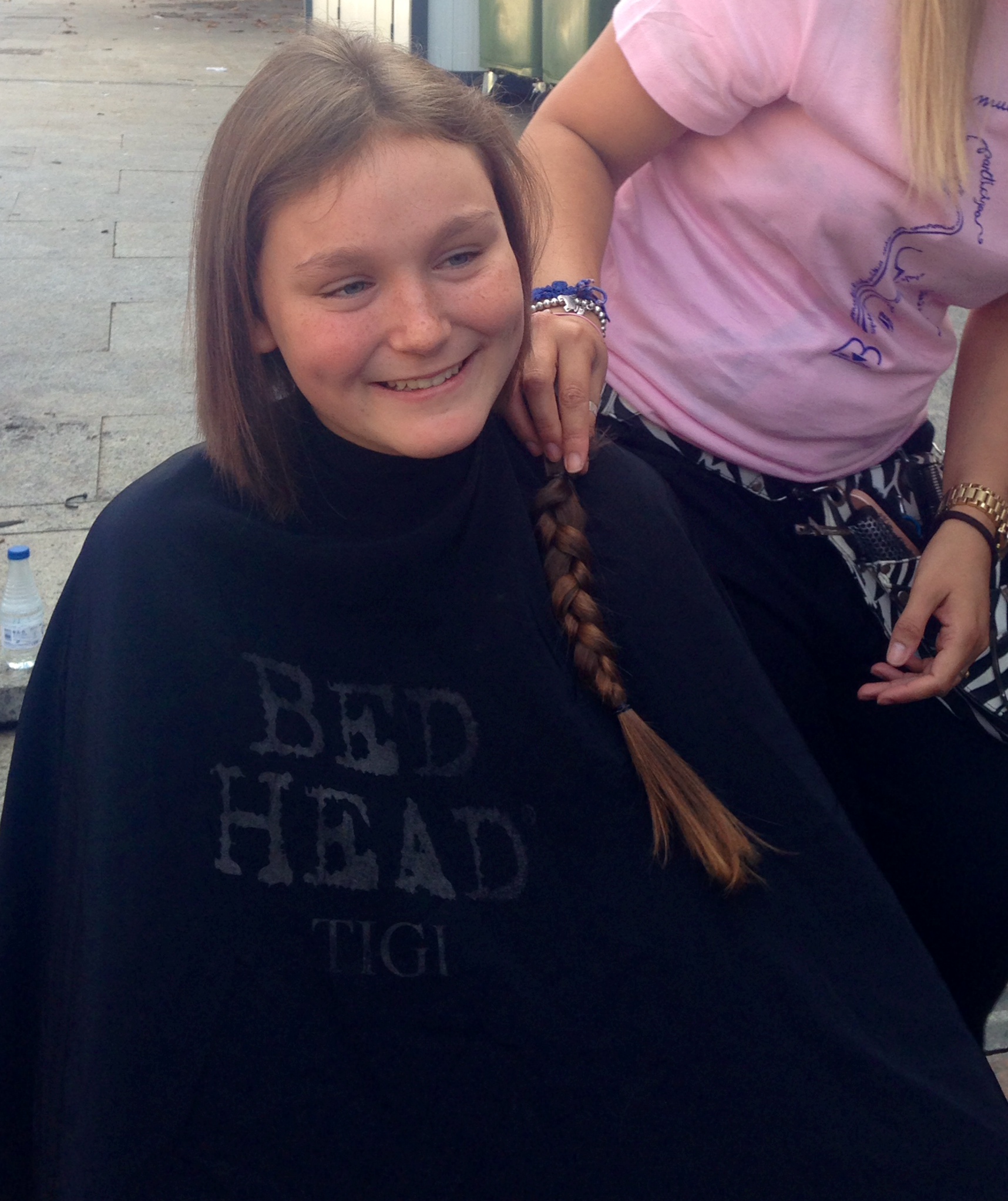 • Mi compañera de trabajo y amiga Ana, que se ha acercado a la plaza con su hija de tan solo 15 años y la ha animado para  cortarse su preciosa MELENA. Ha sido un gesto espectacular, que una adolescente sea capaz de desprenderse de algo tan característico y que tanto nos importa a las chicas (yo recuerdo con horror cuando me diagnosticaron y llevaba el pelo tan largo…… solo pensaba….mi melena, ufff). Mil gracias a Anastasia y todas las demás que habéis hecho posible que muchas mujeres puedan tener pelucas de pelo natural cuando los tratamientos hacen que perdamos el nuestro.